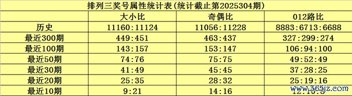上期回顾:陈设三第2025304期奖号为079,奖号012路比为2:1:0,奇偶比为2:1,大小比为2:1,和值为16,跨度为9。