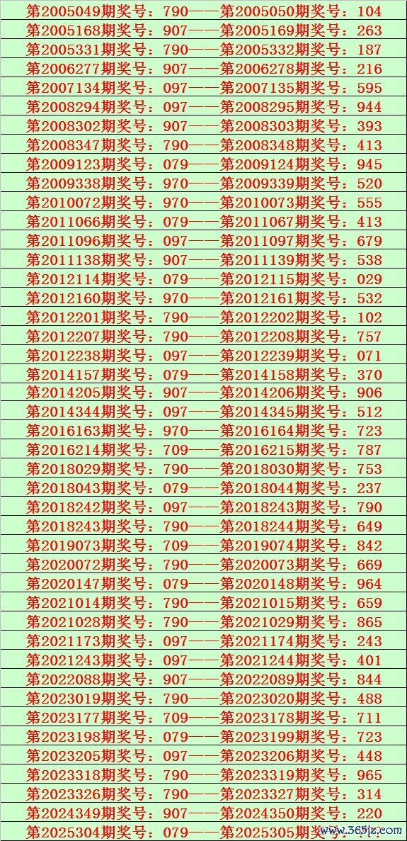 枚举三第2025305期开奖日历:2025年11月15日,历史上第305期已开出了20次奖号,积年同时号码离别为:578、259、798、010、487、937、116、721、238、004、549、368、005、190、482、373、156、048、679、841。